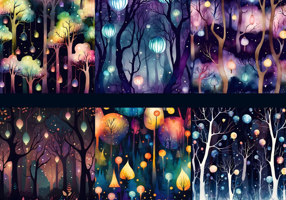This is a set of 18 digital papers of a Whimsical forest.