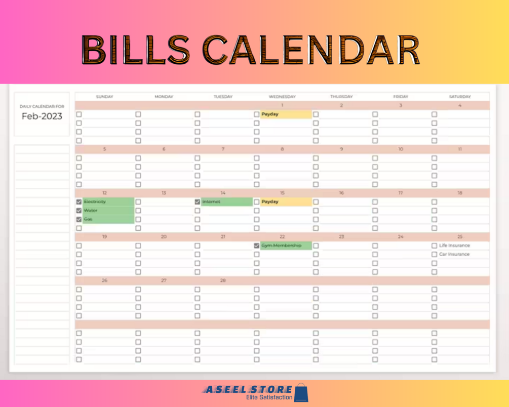 Customizable Calendar Template: Plan and track your financial commitments with an integrated calendar system.